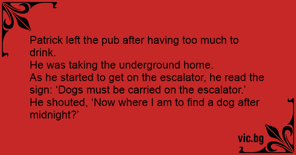 As he started to get on the escalator, he read the sign: ‘Dogs must be carried on the escalator.’