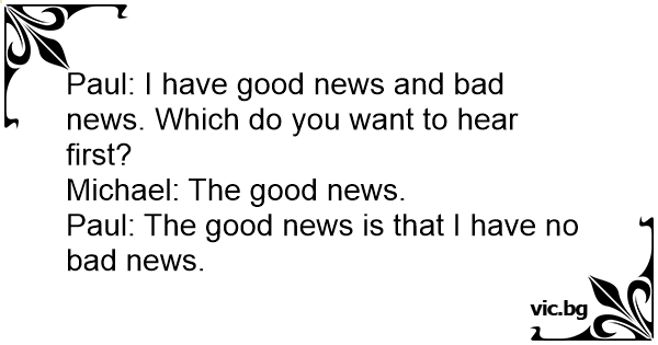 Paul: I have good news and bad news. Which do you want to hear first?