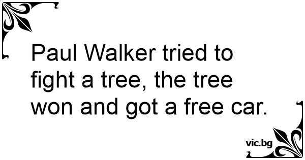 Paul Walker tried to fight a tree, the tree won and got a free car.