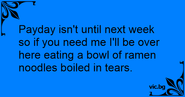 Payday isn't until next week so if you need me I'll be over here eating a bowl of ramen noodles boiled in tears.