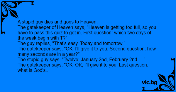The gatekeeper says, "OK, OK, I'll give it to you. Last question: what is God's first name?"