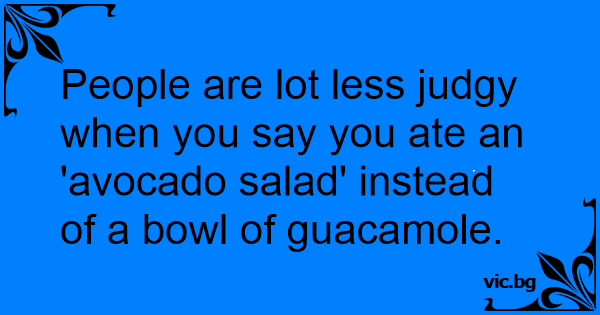 People are lot less judgy when you say you ate an 'avocado salad' instead of a bowl of guacamole.