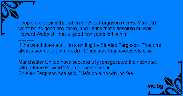 If the world does end, I’m standing by Sir Alex Ferguson. That c*nt always seems to get an extra 10 minutes than everybody else.
