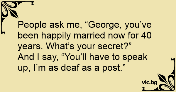 And I say, “You’ll have to speak up, I’m as deaf as a post.”