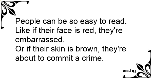 Толкова е лесно да разчиташ хората. Ето например, ако лицето на някои е червено, човека е засрамен. А ако е черен, вероятно ще извърши престъпление ..