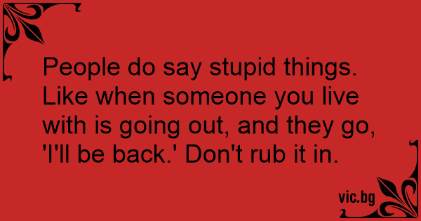 People do say sтuрid things. Like when someone you live with is going out, and they go, 'I'll be back.' Don't rub it in.