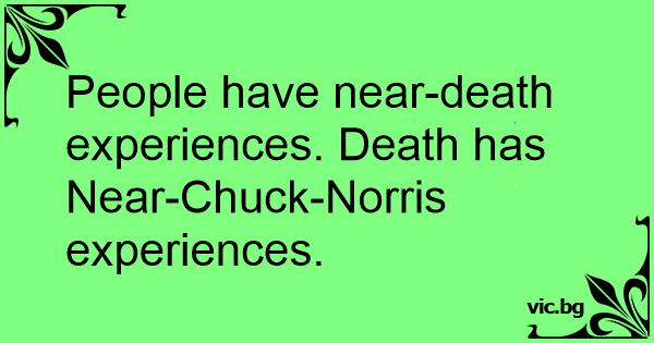 People have near-death experiences. Death has Near-Chuck-Norris experiences.