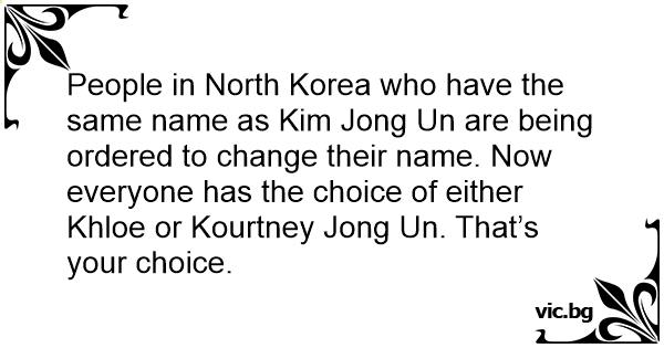 People in North Korea who have the same name as Kim Jong Un are being ordered to change their name. Now everyone has the choice of either Khloe or Kourtney Jong Un. That’s your choice.