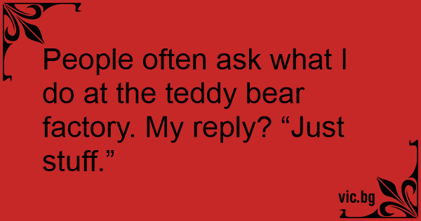 People often ask what I do at the teddy bear factory. My reply? “Just stuff.”