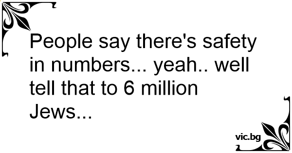 People say there's safety in numbers... yeah.. well tell that to 6 million Jews...