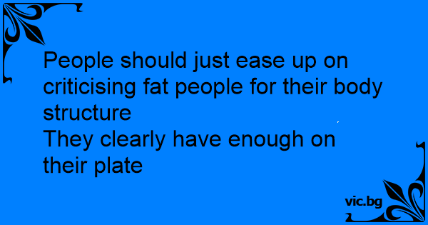 People should just ease up on criticising fат people for their body structure