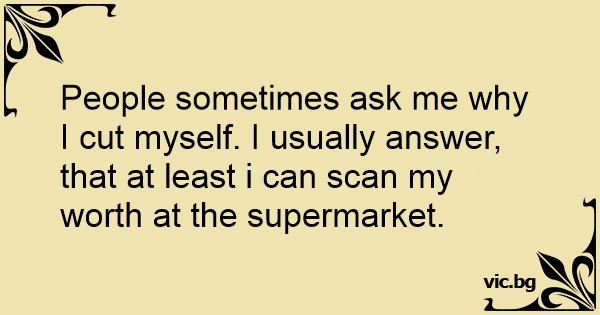 People sometimes ask me why I cut myself. I usually answer, that at least i can scan my worth at the supermarket.