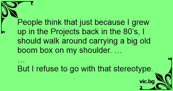 People think that just because I grew up in the Projects back in the 80’s, I should walk around carrying a big old boom box on my shoulder. …
