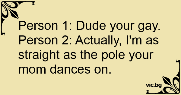 Person 2: Actually, I'm as straight as the pole your mom dances on.