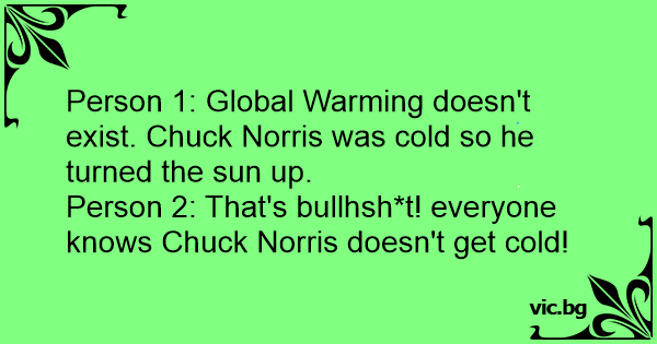 Person 1: Global Warming doesn't exist. Chuck Norris was cold so he turned the sun up.