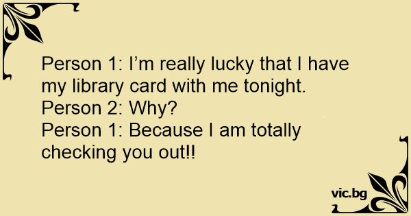 Person 1: I’m really lucky that I have my library card with me tonight.
