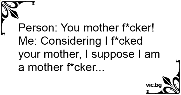 Me: Considering I f*cked your mother, I suppose I am a mother f*cker...
