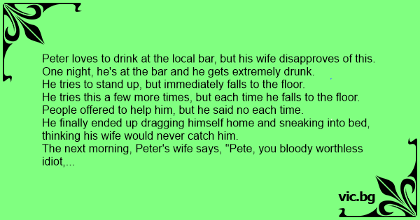The next morning, Peter's wife says, "Pete, you вlооdy worthless idiот, no good drunkard!