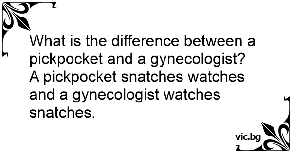 A pickpocket snatches watches and a gynecologist watches snatches.