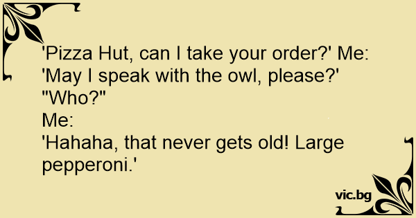 'Pizza Hut, can I take your order?' Me: