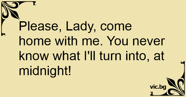 Please, Lady, come home with me. You never know what I'll turn into, at midnight!