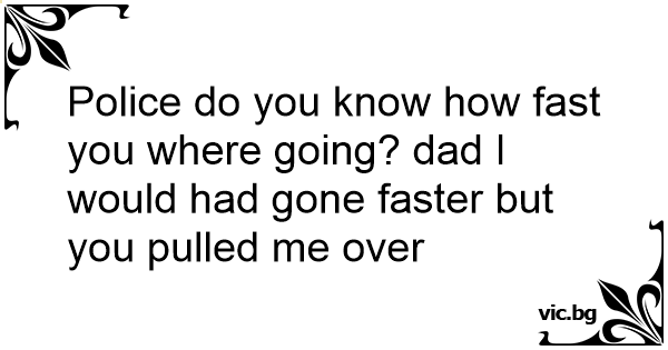 Police do you know how fast you where going? dad I would had gone faster but you pulled me over