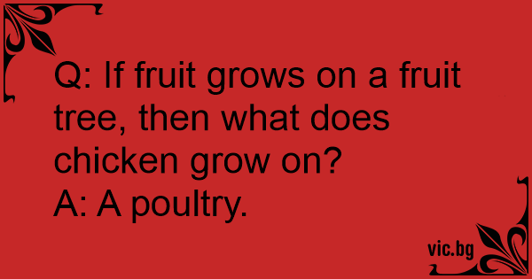 Q: If fruit grows on a fruit tree, then what does chicken grow on?