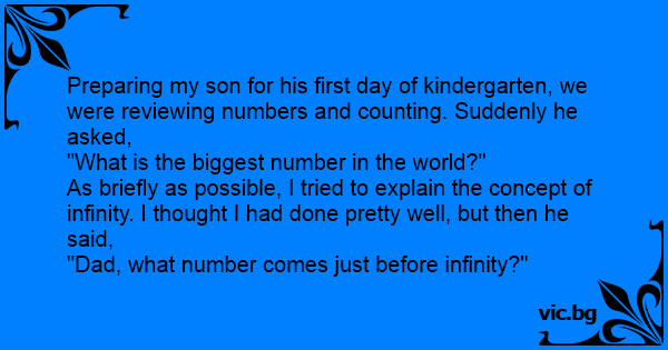 As briefly as possible, I tried to explain the concept of infinity. I thought I had done pretty well, but then he said,