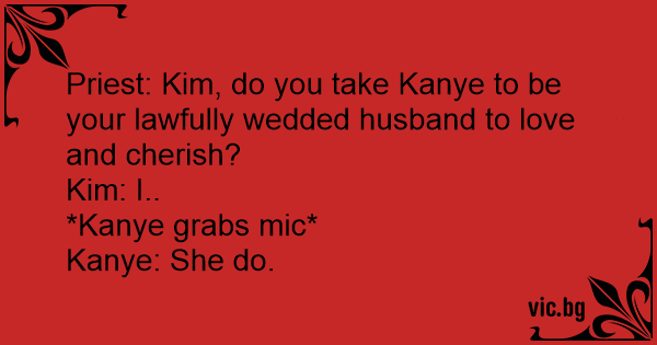 Priest: Kim, do you take Kanye to be your lawfully wedded husband to love and cherish?