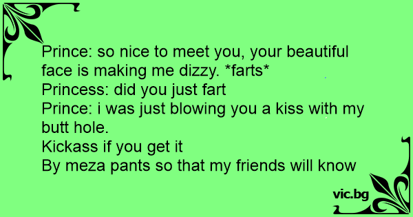 Prince: so nice to meet you, your beautiful face is making me dizzy. *farts*