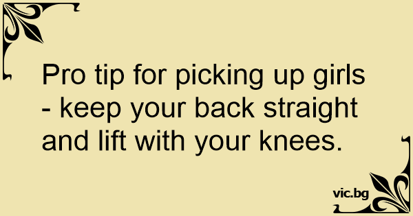 Pro tip for picking up girls - keep your back straight and lift with your knees.