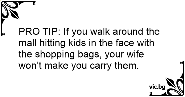PRO TIP: If you walk around the mall hitting kids in the face with the shopping bags, your wife won’t make you carry them.