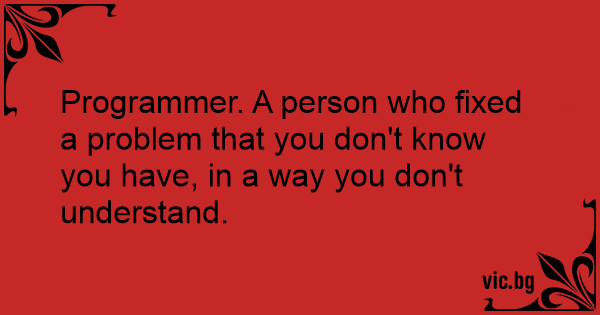 Programmer. A person who fixed a problem that you don't know you have, in a way you don't understand.