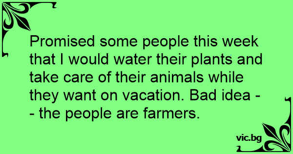 Promised some people this week that I would water their plants and take care of their animals while they want on vacation. Bad idea -- the people are farmers.