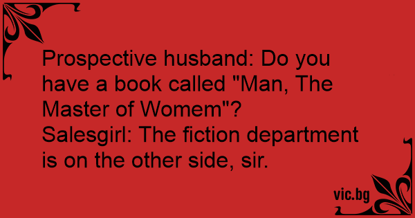 Prospective husband: Do you have a book called "Man, The Master of Womem"?