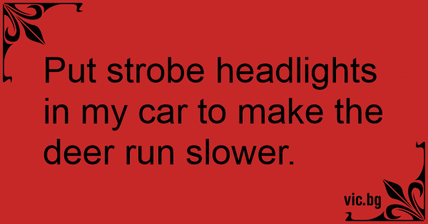Put strobe headlights in my car to make the deer run slower.