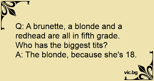 A blonde, brunette, and redhead are in the seventh grade. Which one is the sexiest? The blonde, because she is the only one that's 18.