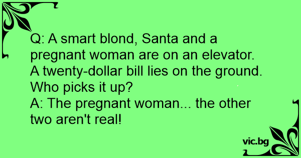 Q: A smart blond, Santa and a pregnant woman are on an elevator.