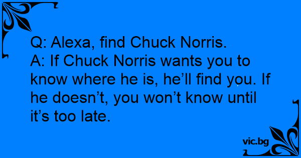 A: If Chuck Norris wants you to know where he is, he’ll find you. If he doesn’t, you won’t know until it’s too late.