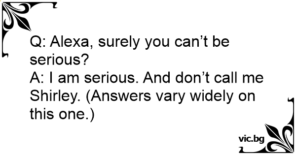 A: I am serious. And don’t call me Shirley. (Answers vary widely on this one.)