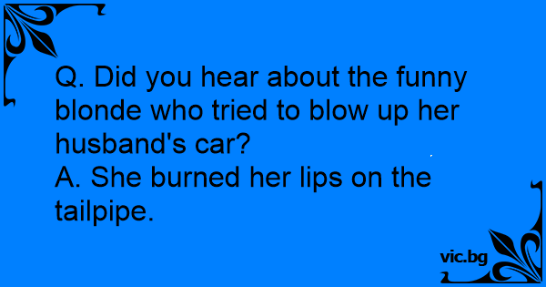 Q. Did you hear about the funny blonde who tried to вlоw up her husband's car?