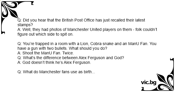 Q: You’re trapped in a room with a Lion, Cobra snake and an ManU Fаn. You have a gun with two bullets. What should you do?
