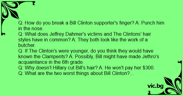 Q: How do you break a Bill Clinton supporter's finger? A: Punch him in the nose.