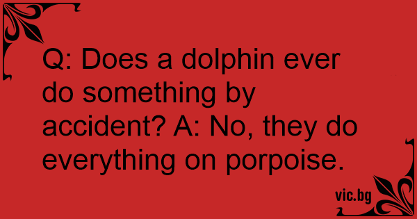 Q: Does a dolphin ever do something by accident? A: No, they do everything on porpoise.