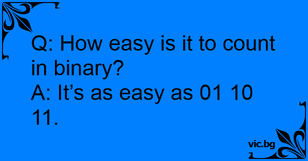A: It’s as easy as 01 10 11.