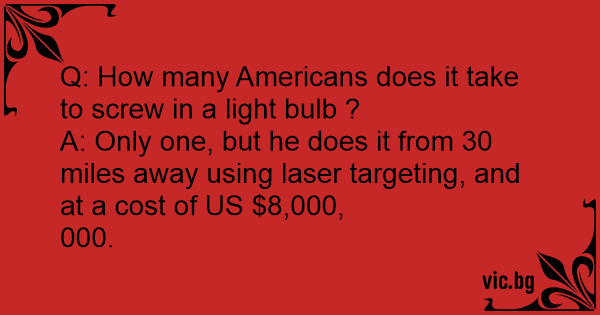 Q: How many Americans does it take to sсrеw in a light bulb ?