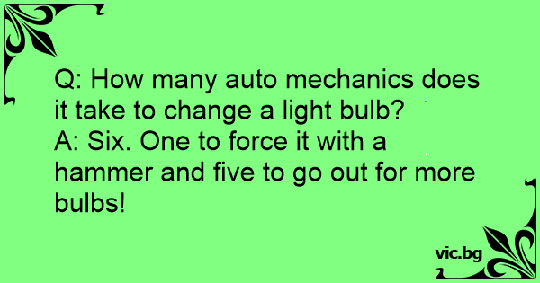 A: Six. One to force it with a hammer and five to go out for more bulbs!