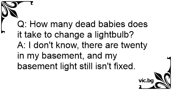 How many babys does it take to screw in a light bulb? Must be more then 9 cause my basement is still dark