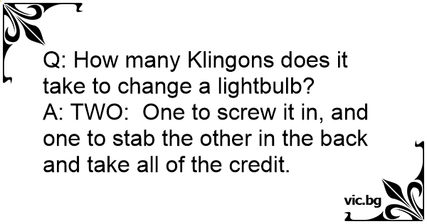Q: How many Klingons does it take to change a lightbulb?