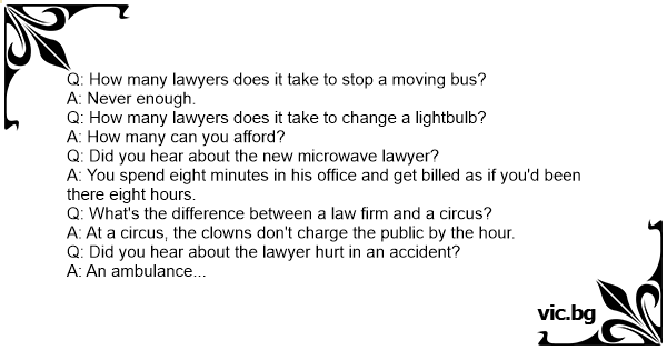 Q: How many lawyers does it take to stop a moving bus?